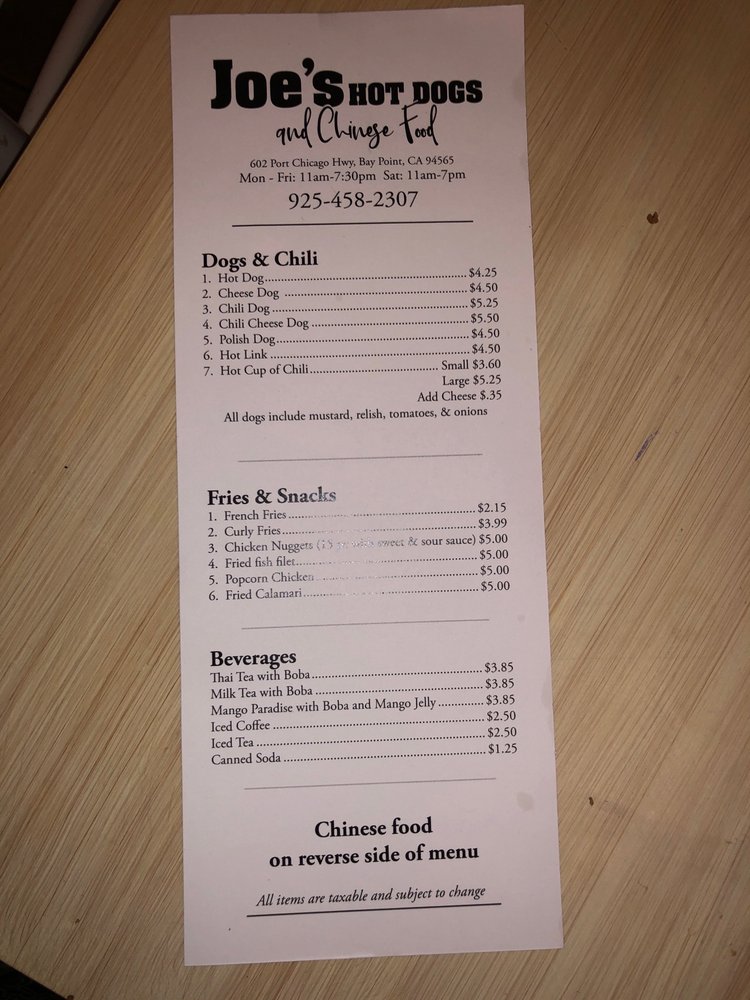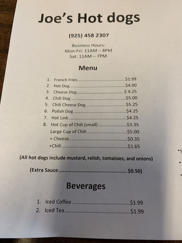 Welcome to Joe’s Hot Dogs, where a delightful twist on a classic American favorite awaits you in Pittsburg, California. This casual eatery offers a menu that caters to both hot dog enthusiasts and those craving something a bit different.
